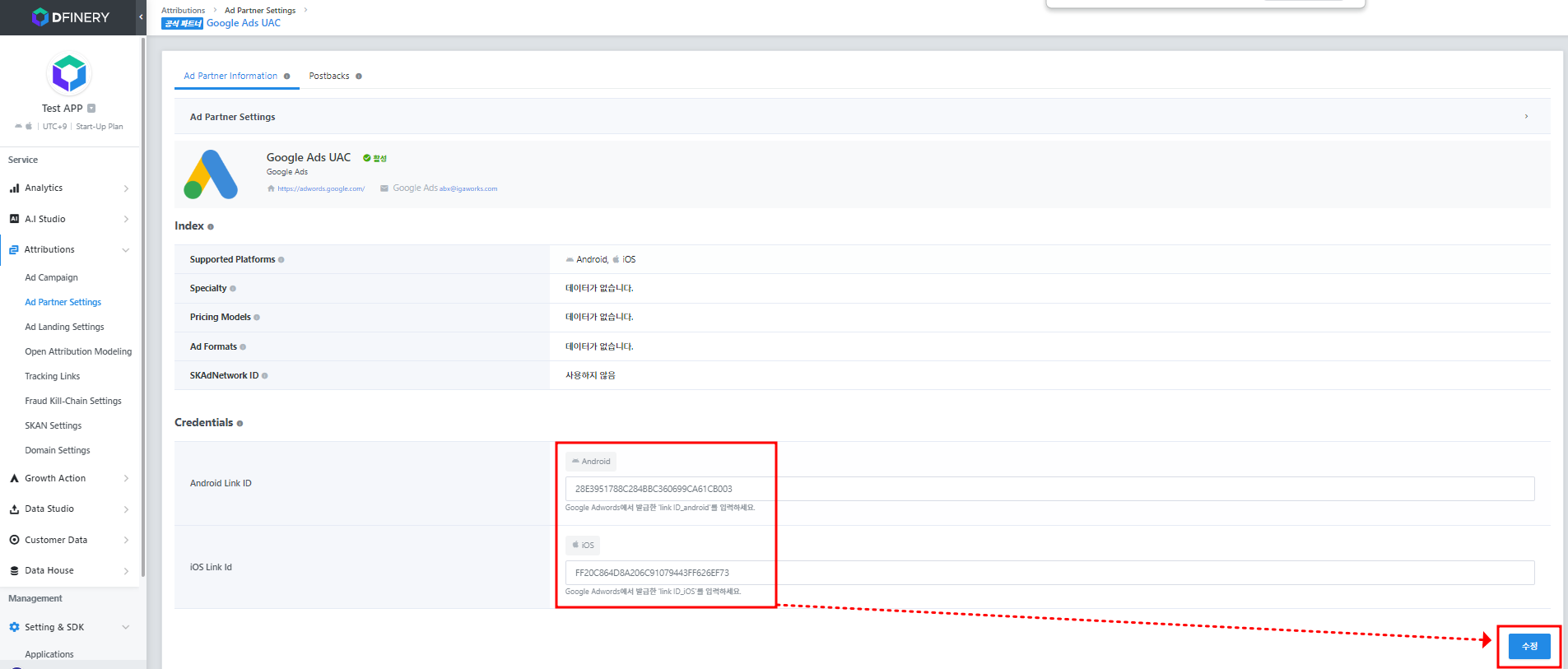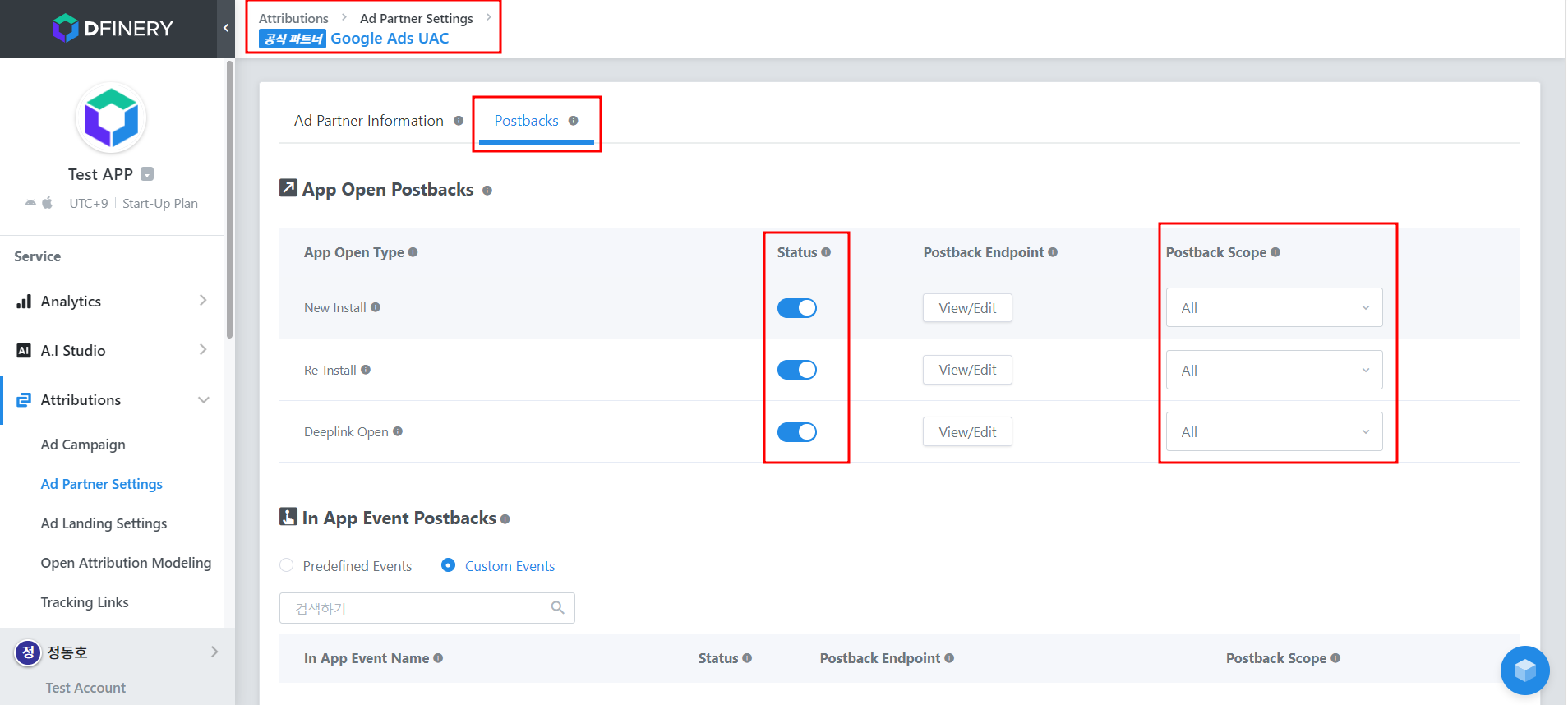 _ Check whether the Package Name and App Store ID of the app are registered normally in the Attributions > Ad Landing Settings menu.